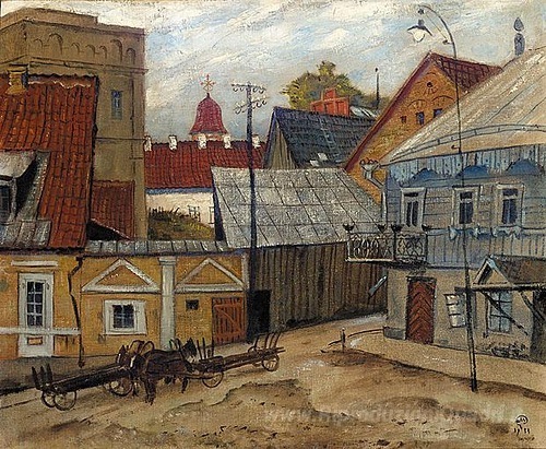 Ti offriamo una riproduzione artigianale su tela dell'opera famosa 'Kaunas' di Mstislav Dobuzhinsky, dal Museo delle Riproduzioni.