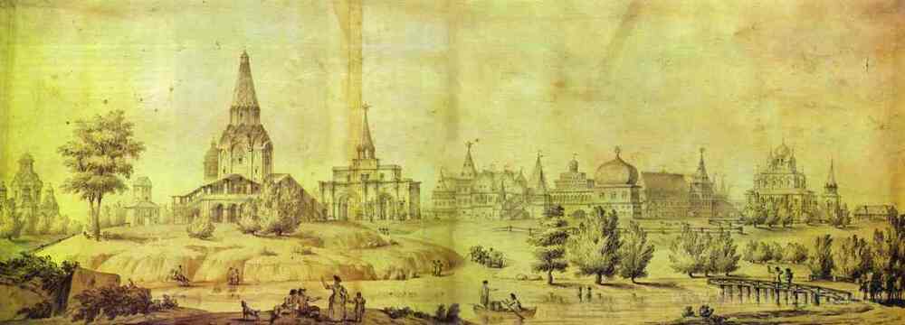 Ti offriamo una riproduzione artigianale su tela dell'opera famosa 'Kolomenskoye' di Giacomo Quarenghi, dal Museo delle Riproduzioni.