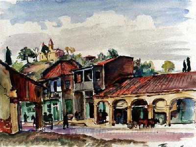 Ti offriamo una riproduzione artigianale su tela dell'opera famosa 'Kutaisi' di Pyotr Konchalovsky, dal Museo delle Riproduzioni.