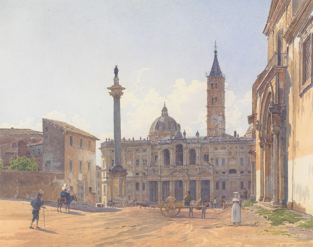 Ti offriamo una riproduzione artigianale su tela dell'opera famosa 'La Basilica di Santa Maria Maggiore a Roma' di Rudolf von Alt, dal Museo delle Riproduzioni.