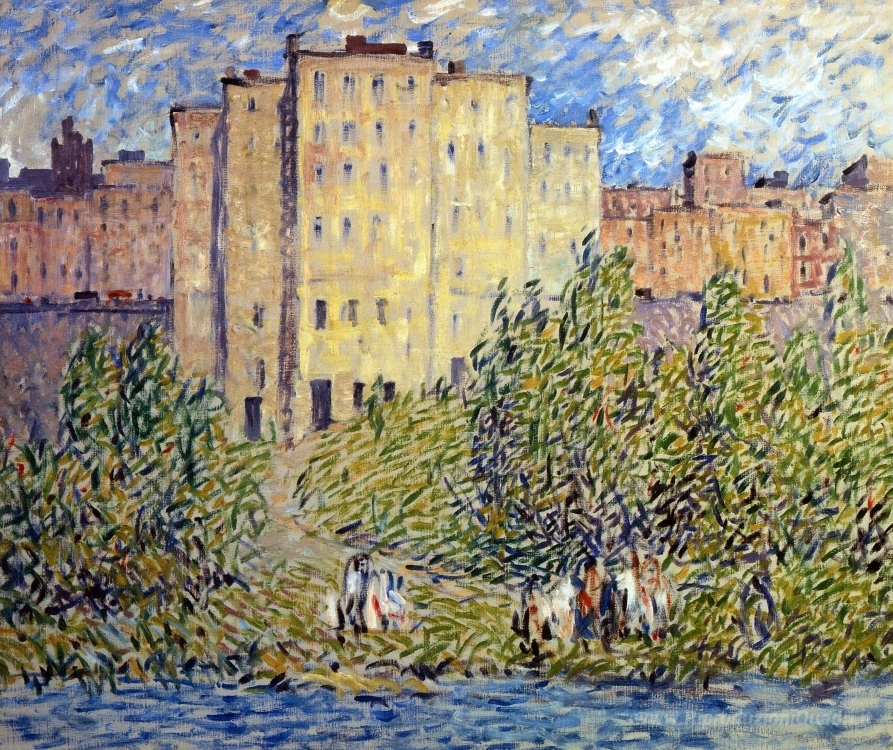Ti offriamo una riproduzione artigianale su tela dell'opera famosa 'La Città Alta' di Robert Spencer, dal Museo delle Riproduzioni.