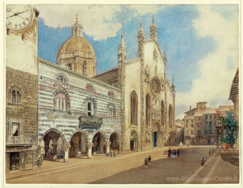 Ti offriamo una riproduzione artigianale su tela dell'opera famosa 'La Piazza del Duomo a Como' di Rudolf von Alt, dal Museo delle Riproduzioni.