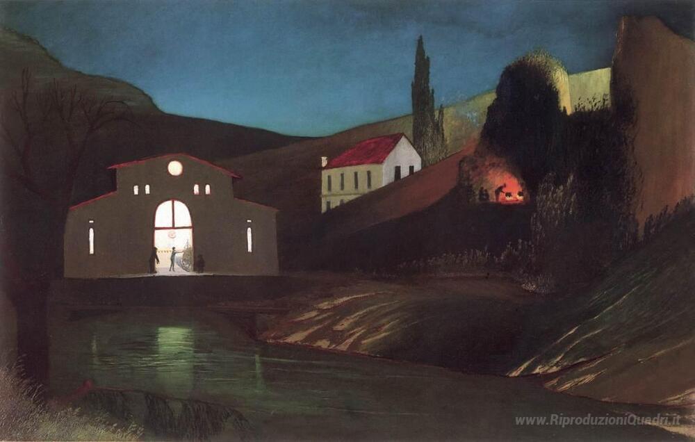 Ti offriamo una riproduzione artigianale su tela dell'opera famosa 'La stazione elettrica a Jajce di notte' di Tivadar Kosztka Csontvary, dal Museo delle Riproduzioni.
