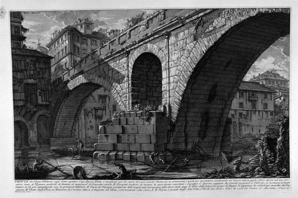Ti offriamo una riproduzione artigianale su tela dell'opera famosa 'Le antichità romane, t. 4, Piatto XVI. Una vista della parte del' di Giovanni Battista Piranesi, dal Museo delle Riproduzioni.