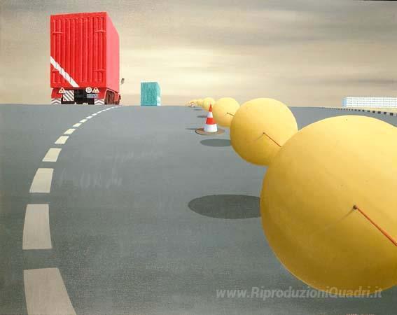 Ti offriamo una riproduzione artigianale su tela dell'opera famosa 'Le sfere Guiding' di Jeffrey Smart, dal Museo delle Riproduzioni.