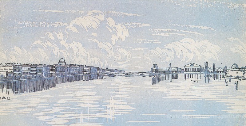 Ti offriamo una riproduzione artigianale su tela dell'opera famosa 'Leningrado. Vista dal Trinity Bridge.' di Anna Ostroumova-Lebedeva, dal Museo delle Riproduzioni.
