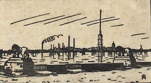 Ti offriamo una riproduzione artigianale su tela dell'opera famosa 'Lions e il Castello (derive di ghiaccio e fortezza)' di Anna Ostroumova-Lebedeva, dal Museo delle Riproduzioni.