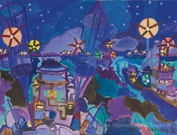 Ti offriamo una riproduzione artigianale su tela dell'opera famosa 'MANOVRE de nuit' di Charles Lapicque, dal Museo delle Riproduzioni.