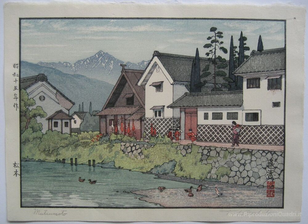 Ti offriamo una riproduzione artigianale su tela dell'opera famosa 'Matsumoto' di Toshi Yoshida, dal Museo delle Riproduzioni.