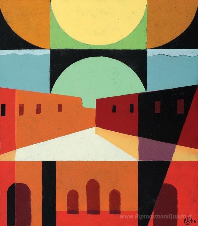 Ti offriamo una riproduzione artigianale su tela dell'opera famosa 'Meridional Città' di Vasile Dobrian, dal Museo delle Riproduzioni.