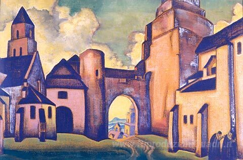 Ti offriamo una riproduzione artigianale su tela dell'opera famosa 'Mistero di pareti' di Nicholas Roerich, dal Museo delle Riproduzioni.