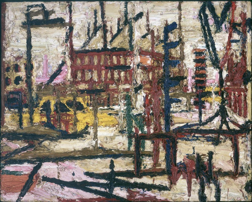 Ti offriamo una riproduzione artigianale su tela dell'opera famosa 'Mornington Crescent' di Frank Auerbach, dal Museo delle Riproduzioni.
