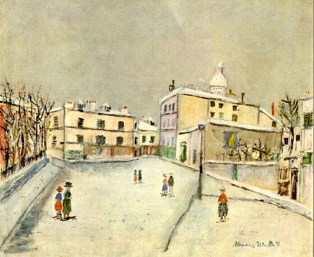 Ti offriamo una riproduzione artigianale su tela dell'opera famosa 'Neve su Montmartre' di Maurice Utrillo, dal Museo delle Riproduzioni.