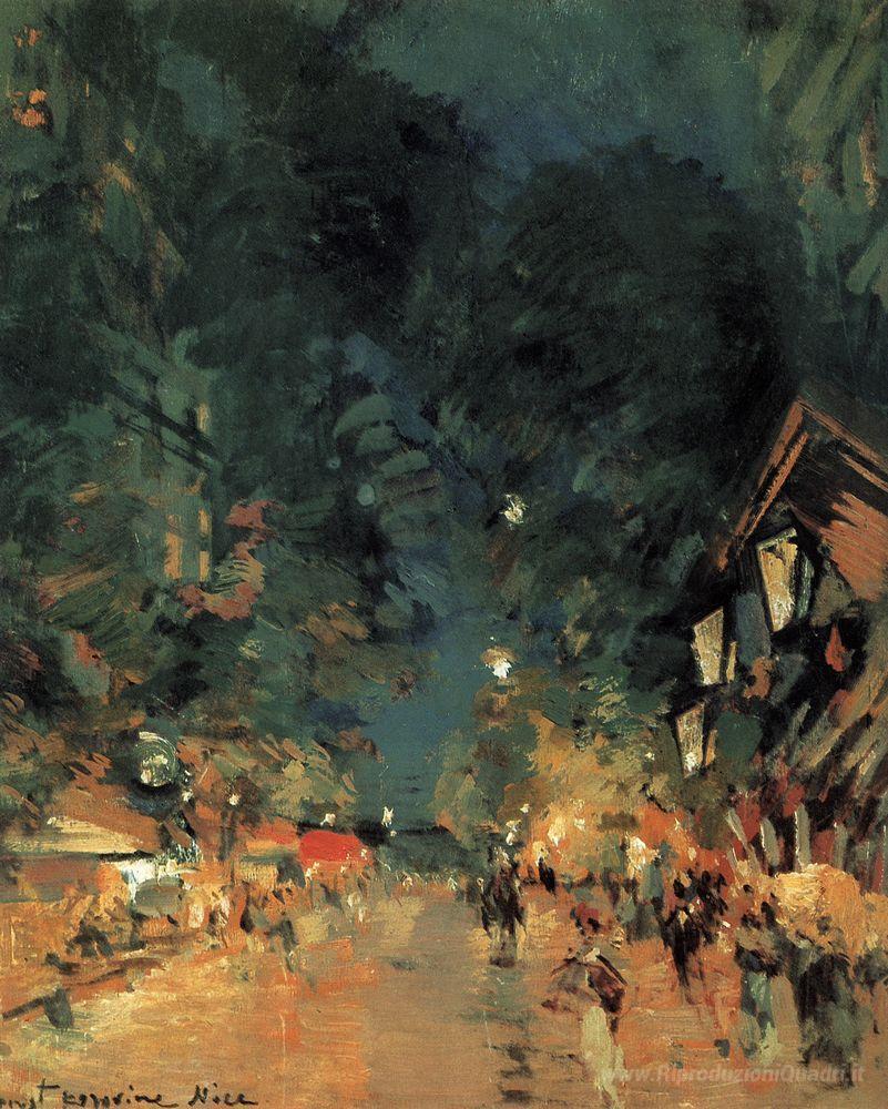 Ti offriamo una riproduzione artigianale su tela dell'opera famosa 'Nice.Street di notte' di Konstantin Korovin, dal Museo delle Riproduzioni.