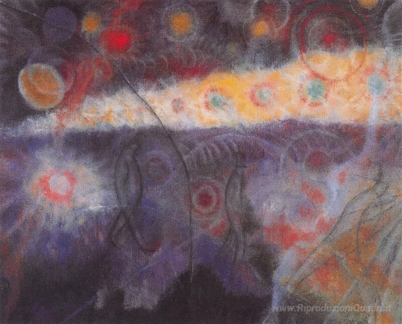 Ti offriamo una riproduzione artigianale su tela dell'opera famosa 'Night II' di Albert Bloch, dal Museo delle Riproduzioni.