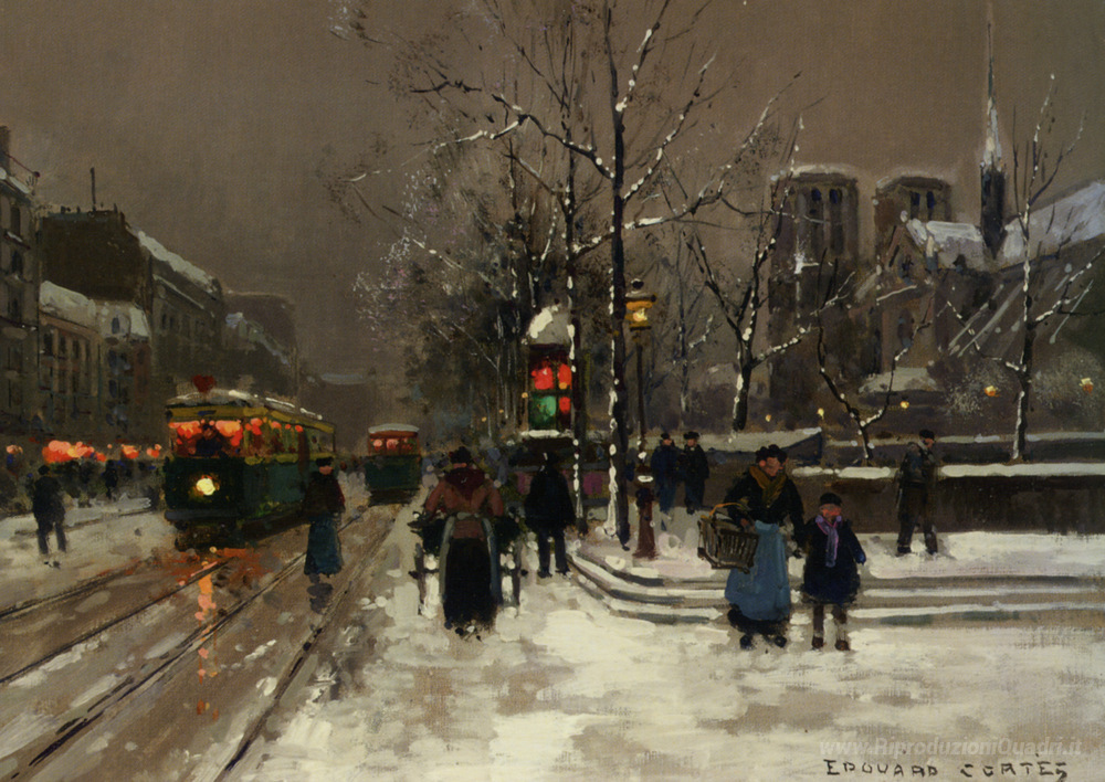 Ti offriamo una riproduzione artigianale su tela dell'opera famosa 'Notre Dame di Parigi' di Edouard Cortes, dal Museo delle Riproduzioni.