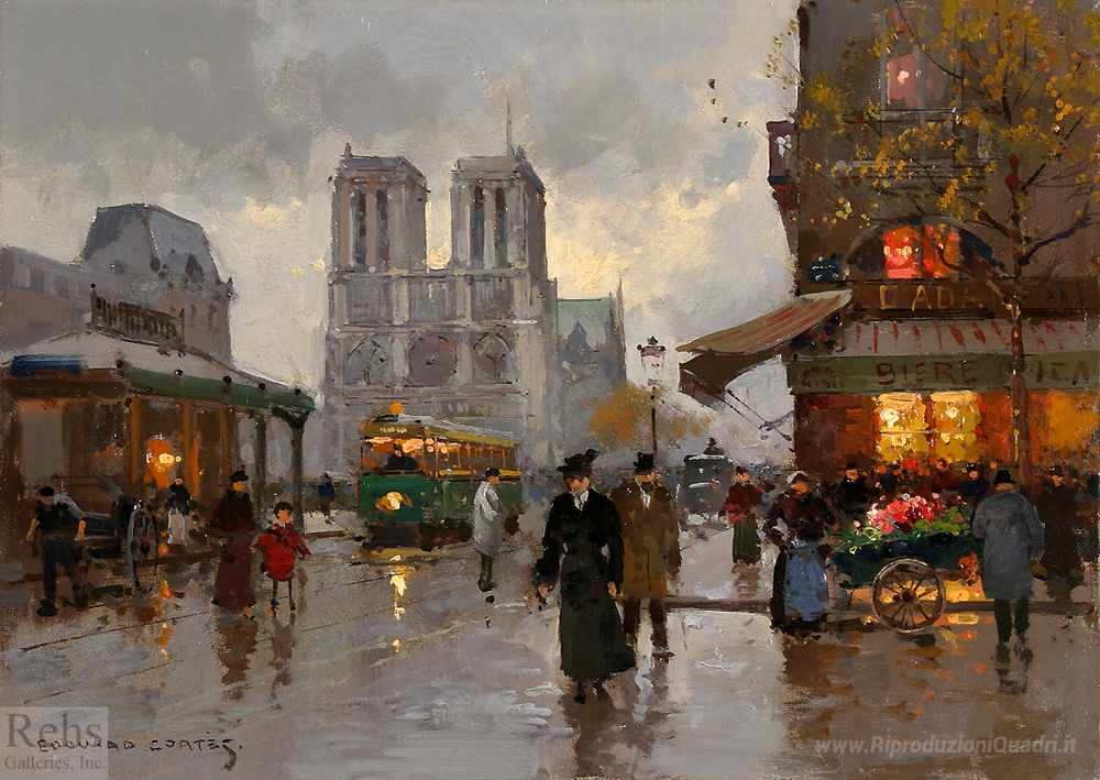 Ti offriamo una riproduzione artigianale su tela dell'opera famosa 'Notre Dame' di Edouard Cortes, dal Museo delle Riproduzioni.