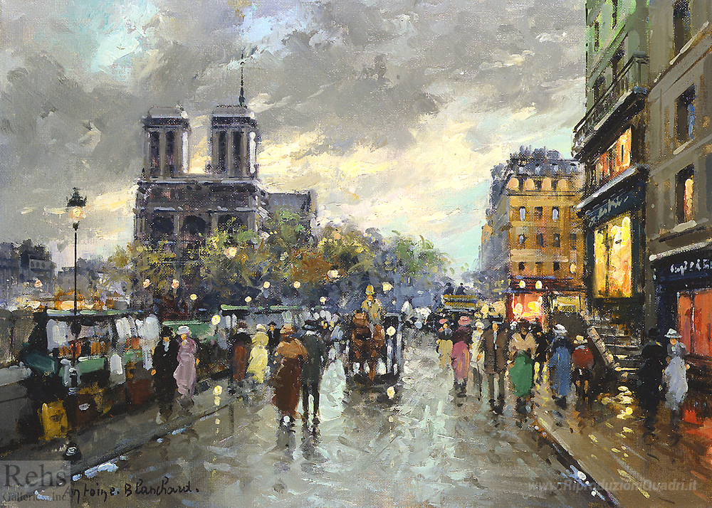 Ti offriamo una riproduzione artigianale su tela dell'opera famosa 'Notre Dame' di Antoine Blanchard, dal Museo delle Riproduzioni.