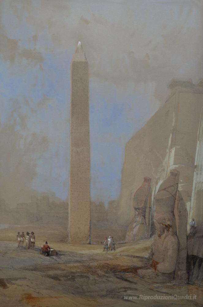Ti offriamo una riproduzione artigianale su tela dell'opera famosa 'Obelisco a Luxor' di David Roberts, dal Museo delle Riproduzioni.