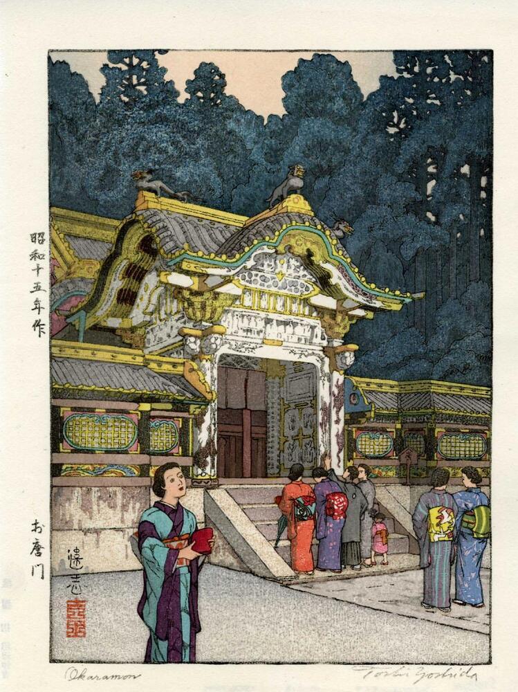 Ti offriamo una riproduzione artigianale su tela dell'opera famosa 'Okaramon' di Toshi Yoshida, dal Museo delle Riproduzioni.