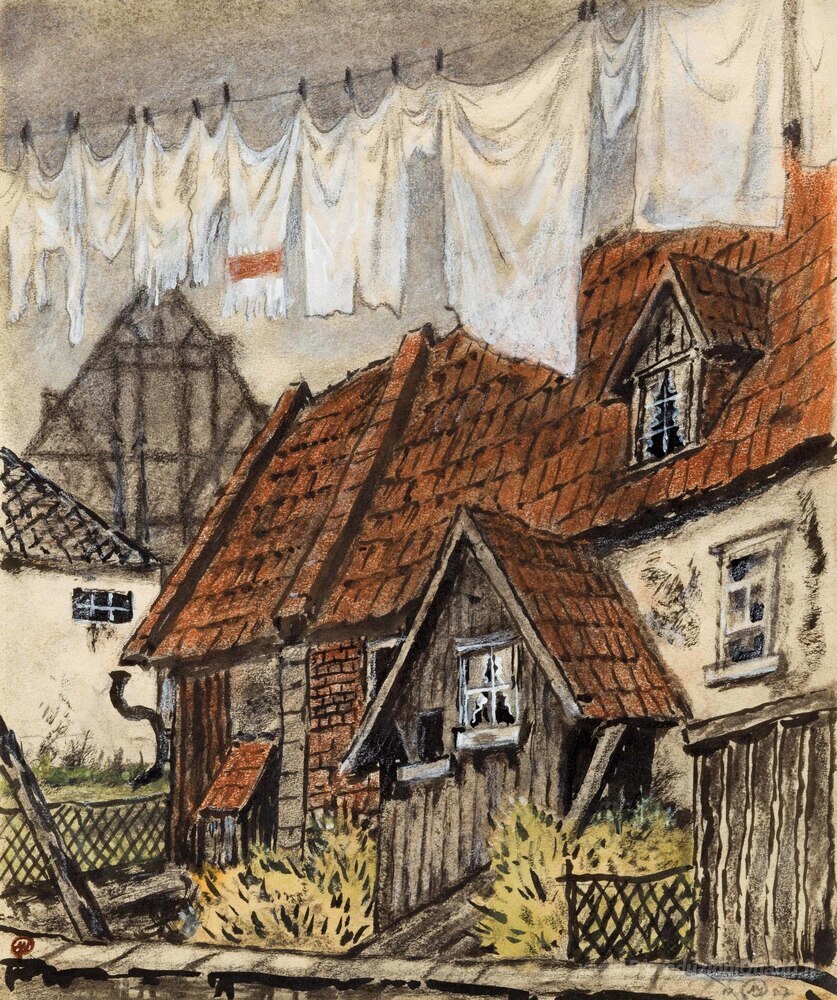 Ti offriamo una riproduzione artigianale su tela dell'opera famosa 'Old House in Germania' di Mstislav Dobuzhinsky, dal Museo delle Riproduzioni.