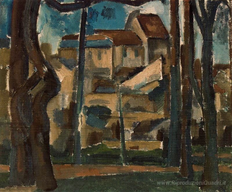 Ti offriamo una riproduzione artigianale su tela dell'opera famosa 'Paesaggio di Carrières' di Andre Derain, dal Museo delle Riproduzioni.