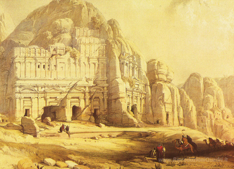 Ti offriamo una riproduzione artigianale su tela dell'opera famosa 'Pelra. Viste della parte orientale della Valle' di David Roberts, dal Museo delle Riproduzioni.