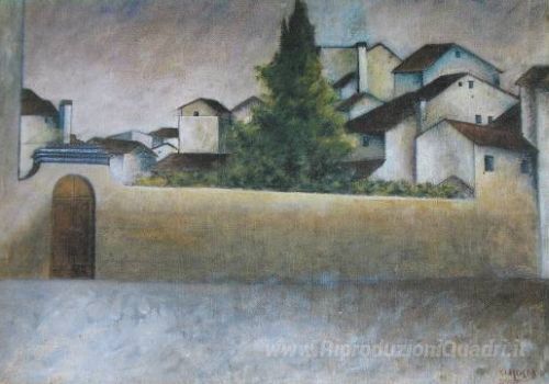 Ti offriamo una riproduzione artigianale su tela dell'opera famosa 'Piazza del Carmine' di Ottone Rosai, dal Museo delle Riproduzioni.