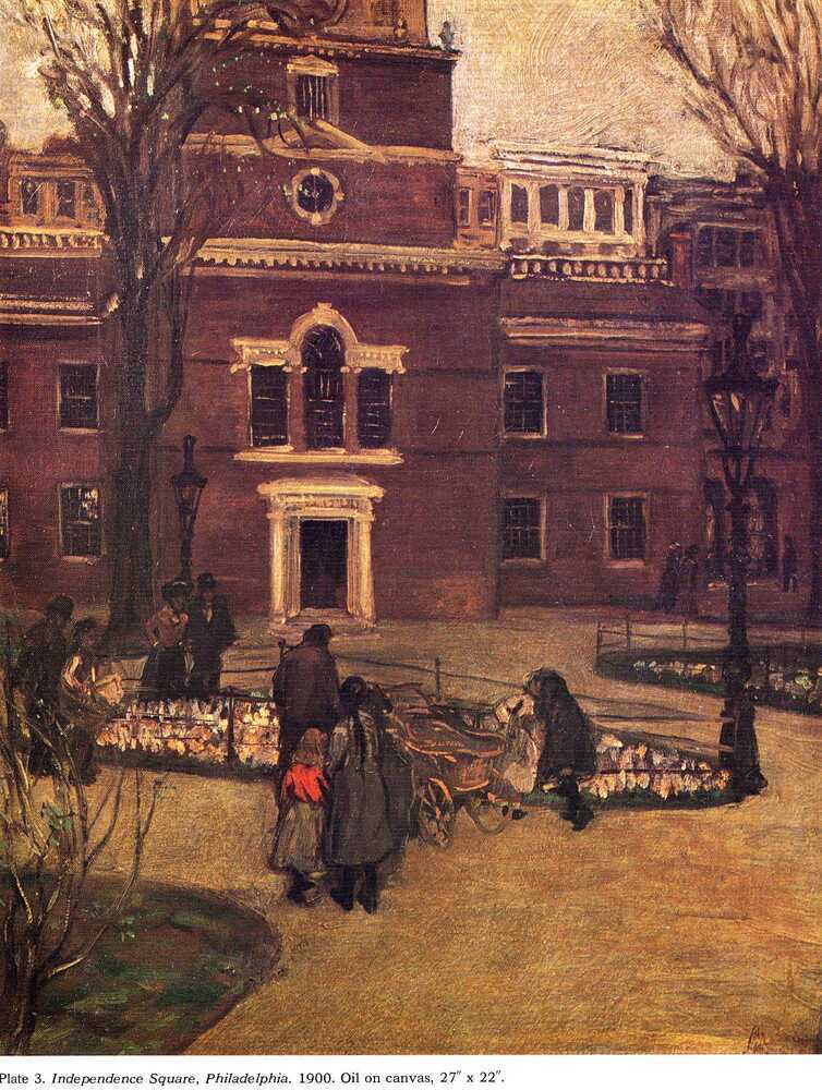 Ti offriamo una riproduzione artigianale su tela dell'opera famosa 'Piazza Indipendenza, Philadelphia' di John French Sloan, dal Museo delle Riproduzioni.