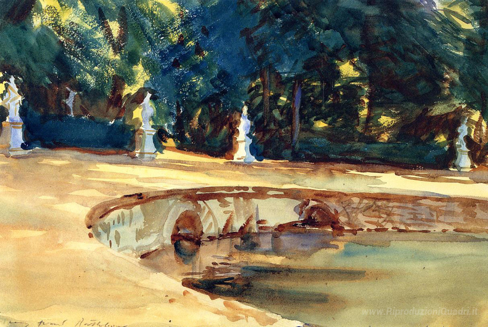 Ti offriamo una riproduzione artigianale su tela dell'opera famosa 'Piscina nel Giardino di La Granja' di John Singer Sargent, dal Museo delle Riproduzioni.