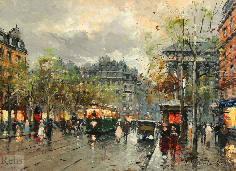 Ti offriamo una riproduzione artigianale su tela dell'opera famosa 'Place de la Madeleine' di Antoine Blanchard, dal Museo delle Riproduzioni.