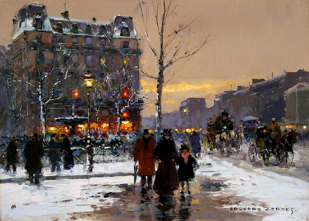 Ti offriamo una riproduzione artigianale su tela dell'opera famosa 'Place Pigalle' di Edouard Cortes, dal Museo delle Riproduzioni.
