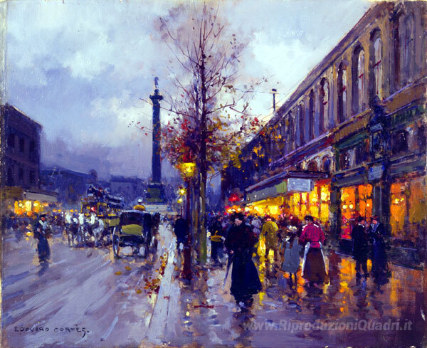 Ti offriamo una riproduzione artigianale su tela dell'opera famosa 'Place Vendome' di Edouard Cortes, dal Museo delle Riproduzioni.