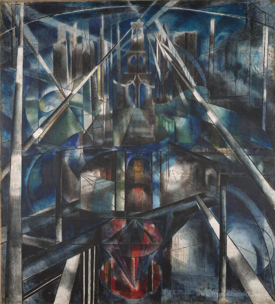 Ti offriamo una riproduzione artigianale su tela dell'opera famosa 'ponte di Brooklyn' di Joseph Stella, dal Museo delle Riproduzioni.