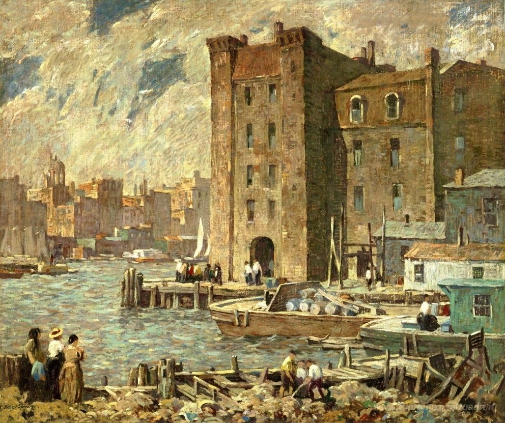 Ti offriamo una riproduzione artigianale su tela dell'opera famosa 'Pontili' di Robert Spencer, dal Museo delle Riproduzioni.