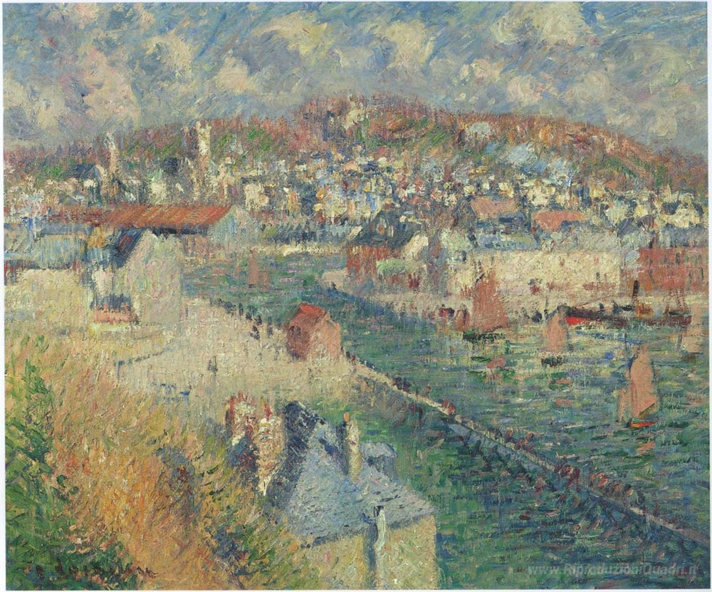 Ti offriamo una riproduzione artigianale su tela dell'opera famosa 'Porto di Fecamp' di Gustave Loiseau, dal Museo delle Riproduzioni.