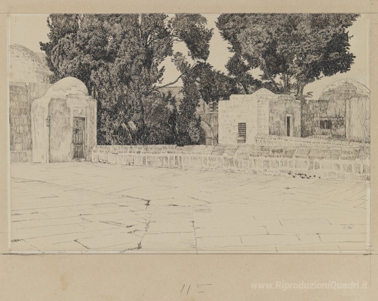 Ti offriamo una riproduzione artigianale su tela dell'opera famosa 'Posteriore della Moschea di Omar' di James Tissot, dal Museo delle Riproduzioni.
