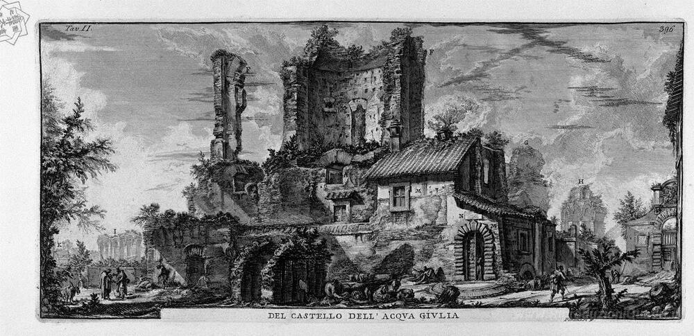 Ti offriamo una riproduzione artigianale su tela dell'opera famosa 'Prospettiva del fronte delle rovine del castello' di Giovanni Battista Piranesi, dal Museo delle Riproduzioni.