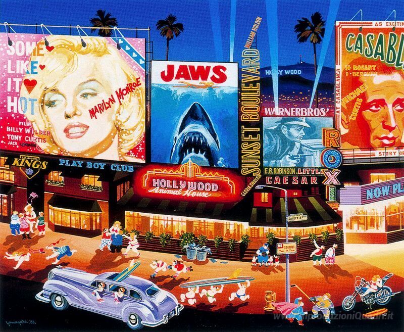 Ti offriamo una riproduzione artigianale su tela dell'opera famosa 'Quattro città Suite, Los Angeles' di Hiro Yamagata, dal Museo delle Riproduzioni.