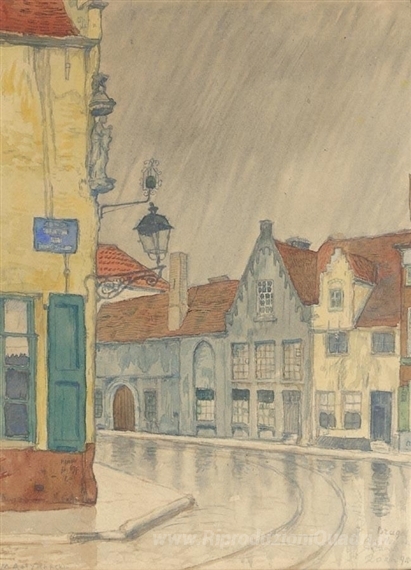 Ti offriamo una riproduzione artigianale su tela dell'opera famosa 'Rue Neuve a Bruges' di Mstislav Dobuzhinsky, dal Museo delle Riproduzioni.