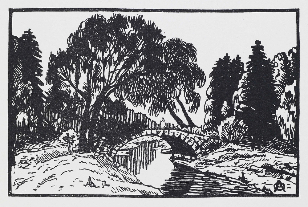 Ti offriamo una riproduzione artigianale su tela dell'opera famosa 'Salici vicino Novosilviysky Ponte' di Anna Ostroumova-Lebedeva, dal Museo delle Riproduzioni.