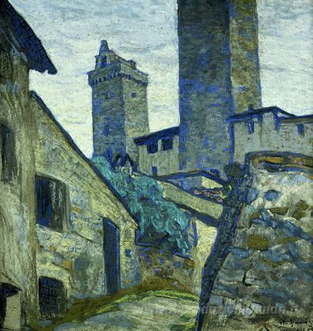 Ti offriamo una riproduzione artigianale su tela dell'opera famosa 'San Gimignano' di Nicholas Roerich, dal Museo delle Riproduzioni.