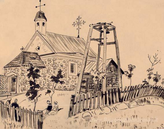 Ti offriamo una riproduzione artigianale su tela dell'opera famosa 'Seda. Chiesa.' di Mstislav Dobuzhinsky, dal Museo delle Riproduzioni.