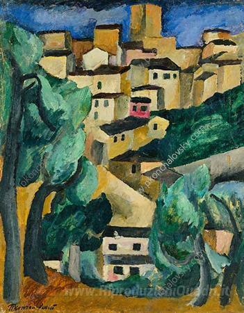 Ti offriamo una riproduzione artigianale su tela dell'opera famosa 'Siena' di Pyotr Konchalovsky, dal Museo delle Riproduzioni.