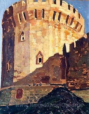 Ti offriamo una riproduzione artigianale su tela dell'opera famosa 'Smolensk. Torre.' di Nicholas Roerich, dal Museo delle Riproduzioni.