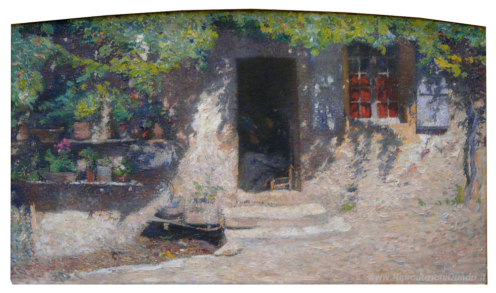 Ti offriamo una riproduzione artigianale su tela dell'opera famosa 'Soleggiato Doorway' di Henri Martin, dal Museo delle Riproduzioni.