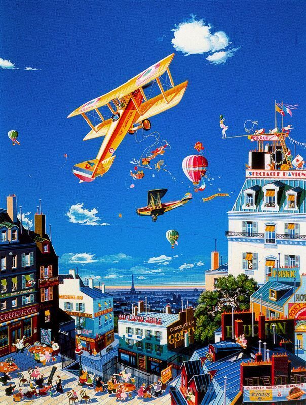 Ti offriamo una riproduzione artigianale su tela dell'opera famosa 'Spettacolo aereo' di Hiro Yamagata, dal Museo delle Riproduzioni.