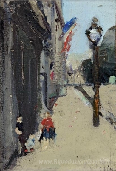 Ti offriamo una riproduzione artigianale su tela dell'opera famosa 'Strasse a Parigi' di Varlin, dal Museo delle Riproduzioni.