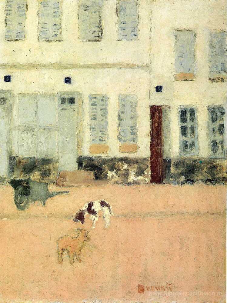 Ti offriamo una riproduzione artigianale su tela dell'opera famosa 'Street a Eragny-sur-Oise o cani a Eragny' di Pierre Bonnard, dal Museo delle Riproduzioni.