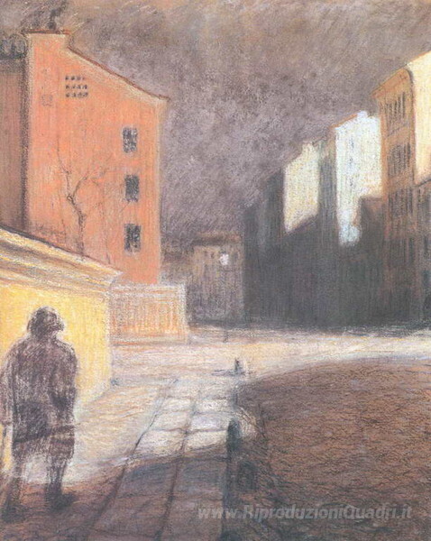 Ti offriamo una riproduzione artigianale su tela dell'opera famosa 'Street a Monaco di Baviera' di Mstislav Dobuzhinsky, dal Museo delle Riproduzioni.